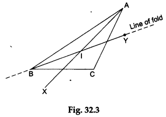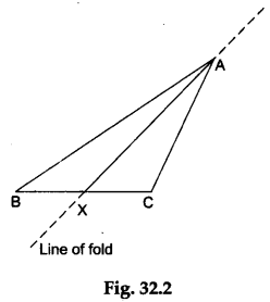 Draw a line AX along the crease. Then, AX is the internal bisector of ∠A as shown in Figure 32.2.
