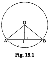 Consider a circle with centre O and radius r having a chord AB. Let OL be the perpendicular drawn from the centre of the circle to the chord AB. Join OA and OB (see Figure 18.1).