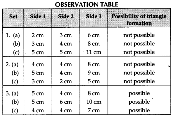 Step 3: Record the lengths of the sticks in the observation table and-also the possibility of triangle formation.