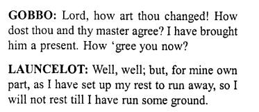 Q.5 Who did the person spoken to address Launcelot? On what note does the scene end?