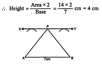 Draw a line segment AB of length 7 cm. Construct the locus of a point P such that area of triangle PAB is 14 cm².