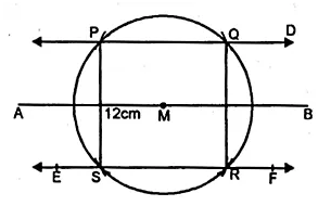 (iv) With centre M and radius 5 cm, draw areas which intersects CD at P and Q and EF at R and S.