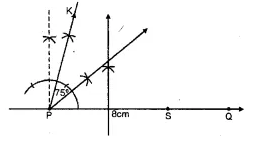 (i) Draw the lines PQ and PK intersecting each other at P making an angle of 75°.