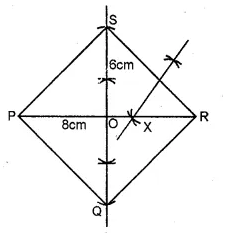 Construct a rhombus PQRS whose diagonals PR, QS are 8 cm and 6 cm respectively. Find by construction a point X equidistant from PQ, PS and equidistant from R, S. Measure XR.