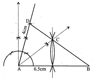 By using ruler and compass only, construct a quadrilateral ABCD in which AB = 6.5 cm, AD = 4cm and ∠DAB = 75°. C is equidistant from the sides AB and AD, also C is equidistant from the points A and B.
