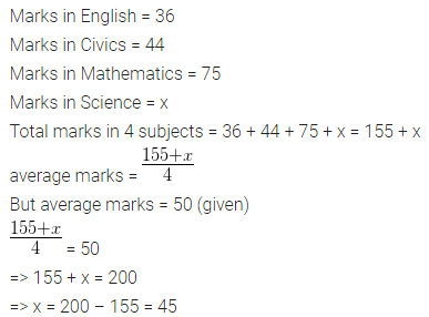 Arun scored 36 marks in English, 44 marks in Civics, 75 marks in Mathematics and x marks in Science. If he has scored an average of 50 marks, find x.