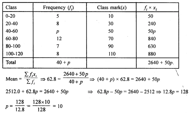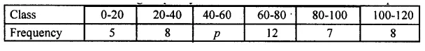 The mean of the following frequency distribution is 62.8. Find the value of p.
