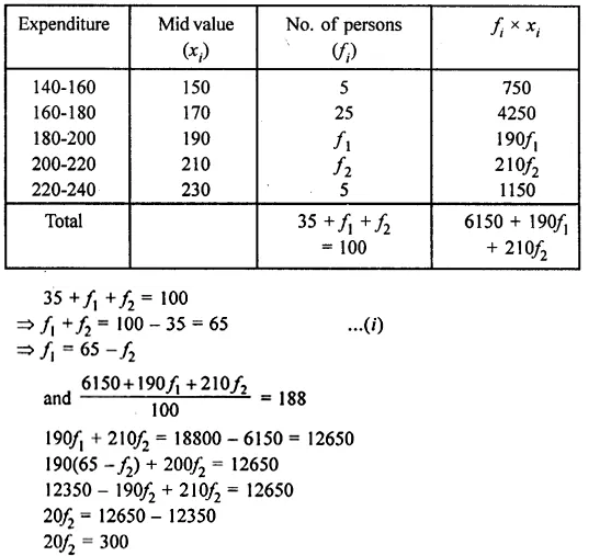 The daily expenditure of 100 families are given below. Calculate f1, and f2, if the mean daily expenditure is Rs 188.