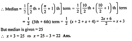 The median of the following numbers, arranged in ascending order is 25. Find x, 11, 13, 15, 19, x + 2, x + 4, 30, 35, 39, 46