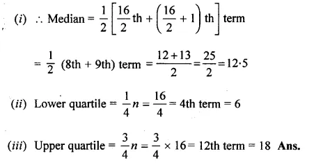 The marks scored by 16 students in a class test are : 3, 6, 8, 13, 15, 5, 21, 23, 17, 10, 9, 1, 20, 21, 18, 12