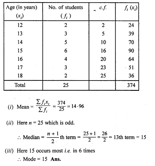 ML Aggarwal Class 10 Solutions Measures of Central Tendency Chapter Test