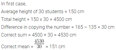 The average height of 30 students is 150 cm. It was detected later that one value of 165 cm was wrongly copied as 135 cm for computation of mean. Find the correct mean.