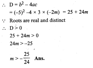 Find the values of m so that the quadratic equation 3x² – 5x – 2m = 0 has two distinct real roots.