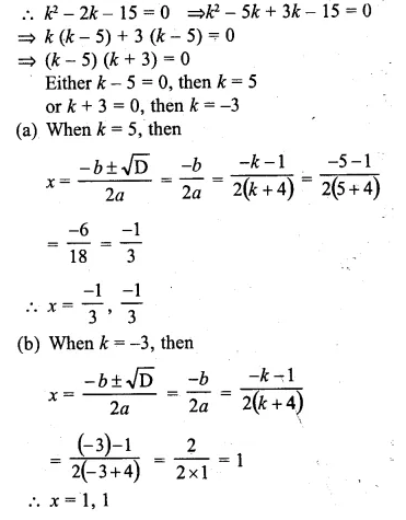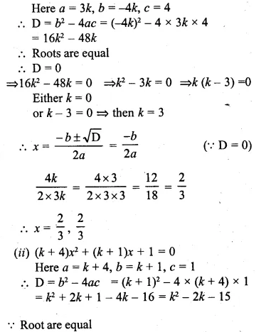 Find the value(s) of k for which each of the following quadratic equation has equal roots: