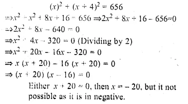 Two squares have sides A cm and (x + 4) cm. The sum of their areas is 656 sq. cm.Express this as an algebraic equation and solve it to find the sides of the squares.