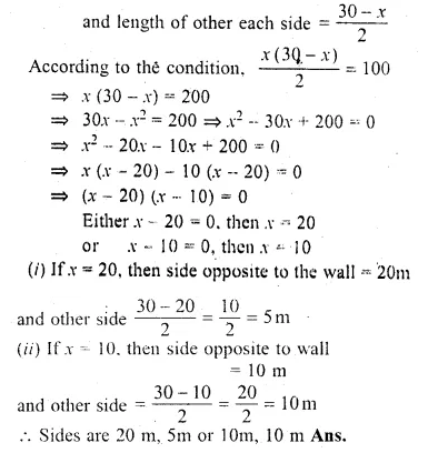 A farmer wishes to grow a 100 m² rectangular vegetable garden. Since he has with him only 30 m barbed wire, he fences three sides of the rectangular garden letting compound wall of his house act as the fourth side fence. Find the dimensions of his garden.