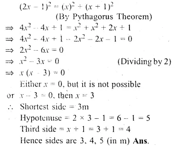 The hypotenuse of a right angled triangle is 1 m less than twice the shortest side. If the third side is 1 m more than the shortest side, find the sides of the triangle.