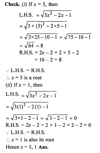 (ii)\(\sqrt { { 3x }^{ 2 }-2x-1 } =2x-2\)
