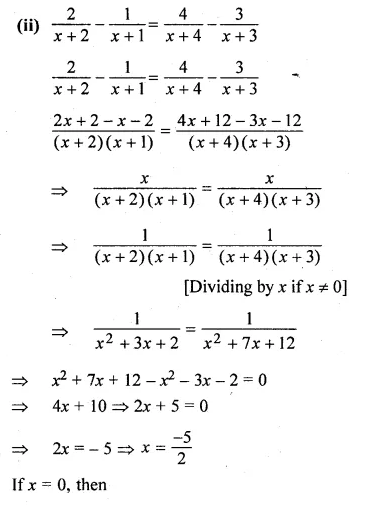 (ii) \(\frac { 2 }{ x+2 } -\frac { 1 }{ x+1 } =\frac { 4 }{ x+4 } -\frac { 3 }{ x+3 } \)