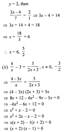 (ii) \(\frac { 4 }{ x } -3=\frac { 5 }{ 2x+3 } ,x\neq 0,-\frac { 3 }{ 2 } \)