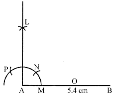 Draw a line segment AB = 5.4 cm. Construct a perpendicular at A by using ruler and compass.