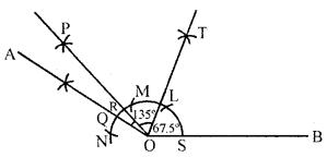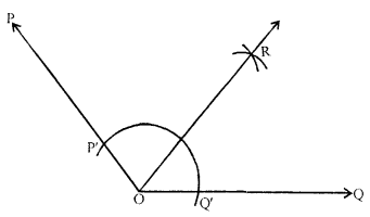 (ii) Place the centre of the protractor at O and the zero edge along \(\overline{\mathrm{OQ}}\).