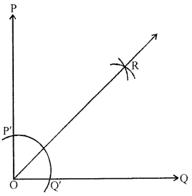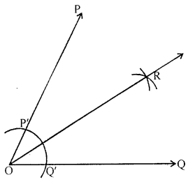 Let the two arcs intersect at R. Then, \(\overline{\mathrm{OR}}\) is the bisector of ∠POQ.
