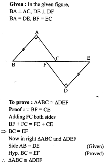 In the given figure, BA ⊥ AC, DE⊥ DF such that BA = DE and BF = EC.