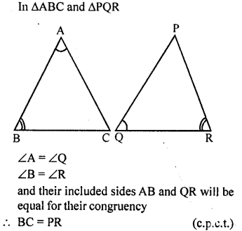 In triangles ABC and PQR, ∠A = ∠Q and ∠B = ∠R. Which side of APQR should be equal to side BC of AABC so that the two triangles are congruent? Give reason for your answer.