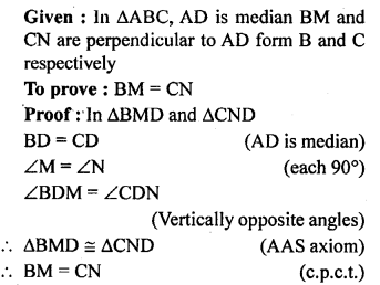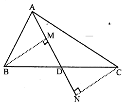 In the given figure, AD is median of ∆ABC, BM and CN are perpendiculars drawn from B and C respectively on AD and AD produced. Prove that BM = CN.