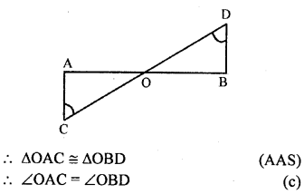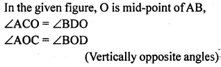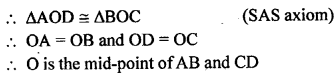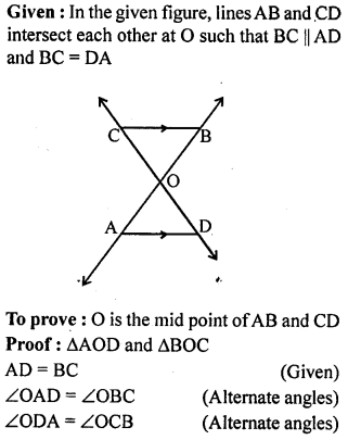 In the given figure, two lines AB and CD intersect each other at the point O such that BC || DA and BC = DA. Show that O is the mid-point of both the line segments AB and CD.