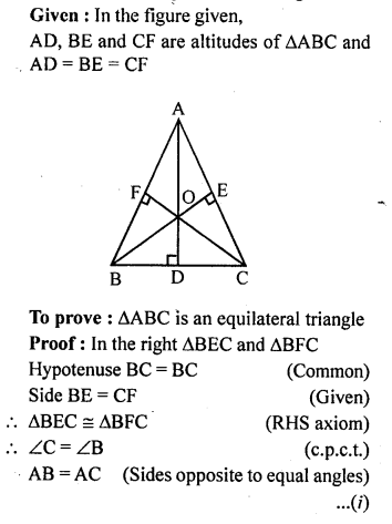 In the given figure, AD, BE and CF arc altitudes of ∆ABC. If AD = BE = CF, prove that ABC is an equilateral triangle.