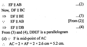 (c) In the figure (3) given below, D and E are mid-points of AB, BC respectively and DF || BC. Prove that DBEF is a parallelogram. Calculate AC if AF = 2.6 cm.