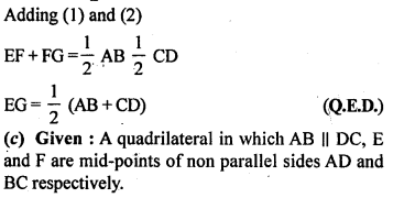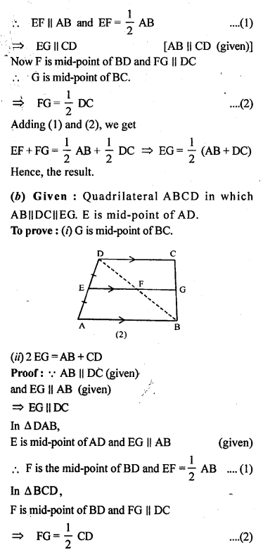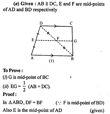 (a) In the quadrilateral (1) given below, AB || DC, E and F are mid-points of AD and BD respectively. Prove that: