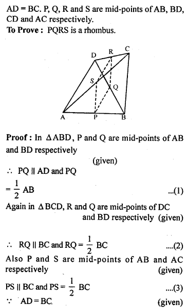 (a) In the quadrilateral (1) given below, AD = BC, P, Q, R and S are mid-points of AB, BD, CD and AC respectively. Prove that PQRS is a rhombus.
