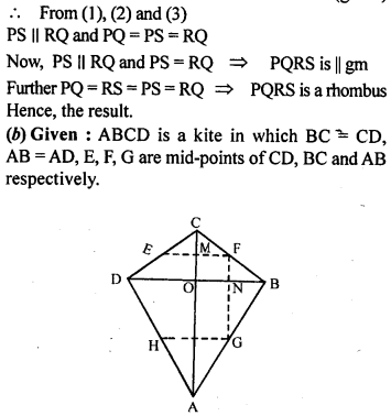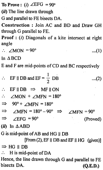 (b) In the figure (2) given below, ABCD is a kite in which BC = CD, AB = AD, E, F, G are mid-points of CD, BC and AB respectively. Prove that: