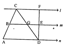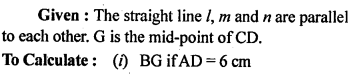 In the adjoining figure, the lines l, m and n are parallel to each other, and G is mid-point of CD. Calculate: