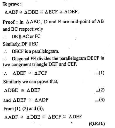 Prove that the four triangles formed by joining in pairs the mid-points of the sides c of a triangle are congruent to each other.