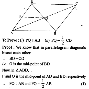 (i) Given : ABCD is a parallelogram in which diagonals AC and BD intersect each other. At point O, P is the mid-point of AD. Join OP.