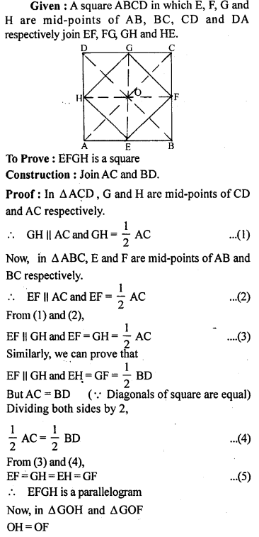 Show that the quadrilateral formed by joining the mid-points of the adjacent sides of a square, is also a square,