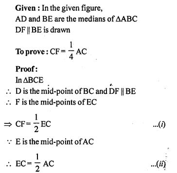 In the adjoining figure, AD and BE are medians of ∆ABC. If DF U BE, prove that CF = \(\frac { 1 }{ 4 }\) AC.