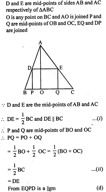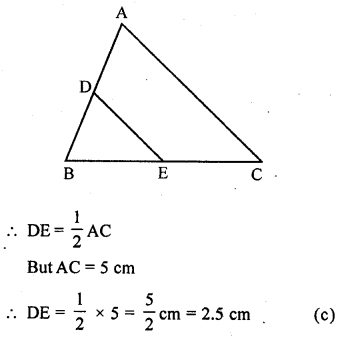 (b) In the figure (2) given below, D and E are mid-points of the sides AB and AC respectively. If BC =