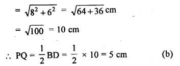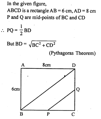 In the given figure, ABCD is a rectangle in which AB = 6 cm and AD = 8 cm. If P and Q are mid-points of the sides BC and CD respectively, then the length of PQ is