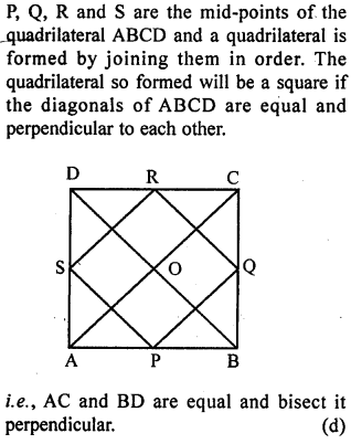 (d) diagonals of ABCD are equal and perpendicular to each other.