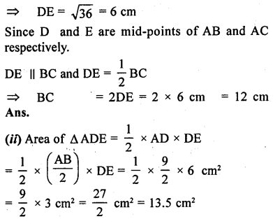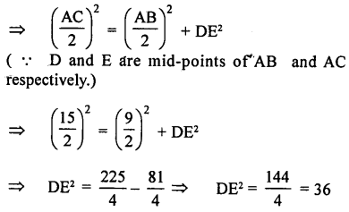 (c) Given. In right angled ∆ ABC, AB = 9 cm, AC = 15 cm, and D, E are mid-points of the sides AB and AC respectively.