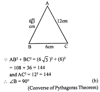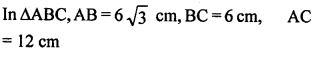 In a ∆ABC, if AB = 6√3 cm, BC = 6 cm and AC = 12 cm, then ∠B is