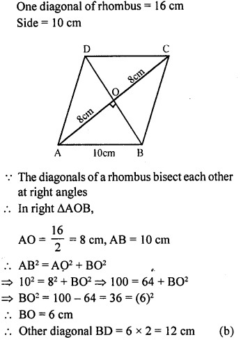 (a) In fig. (i) given below, the diagonals AC and BD of a quadrilateral ABCD intersect at O, at right angles. Prove that