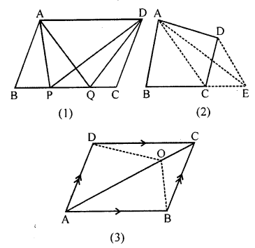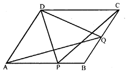 (a) In the figure (1) given below, ABCD is a parallelogram. P, Q are any two points on the sides AB and BC respectively. Prove that, area of ∆ CPD = area of ∆ AQD.