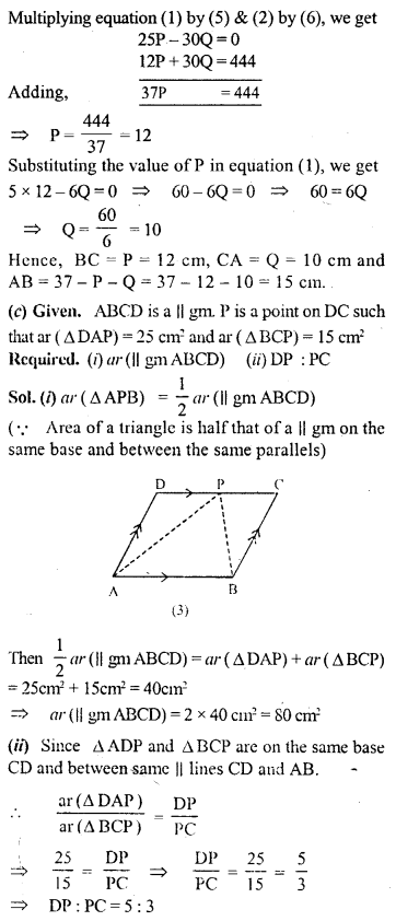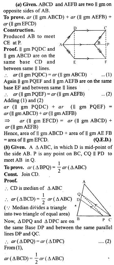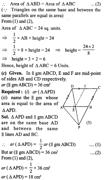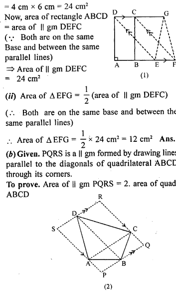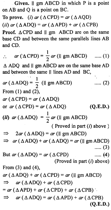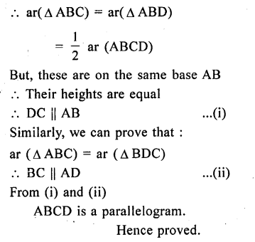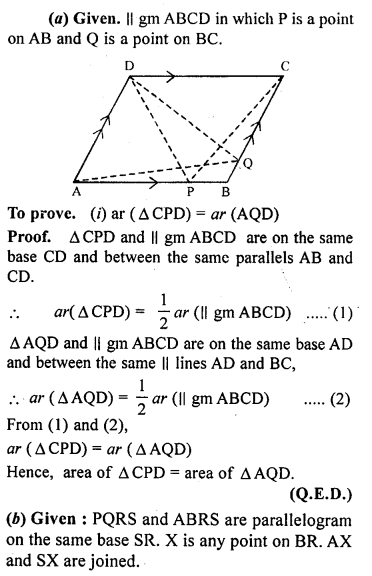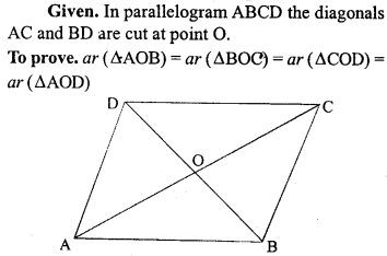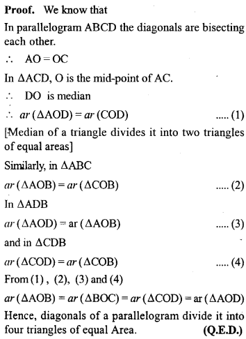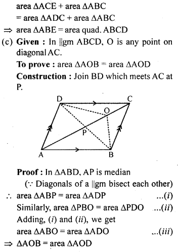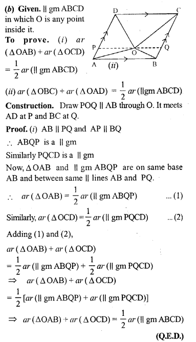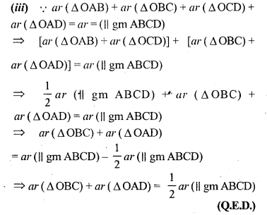 (i) area of ∆OAB + area of ∆OCD = \(\frac { 1 }{ 2 }\) area of || gm ABCD.