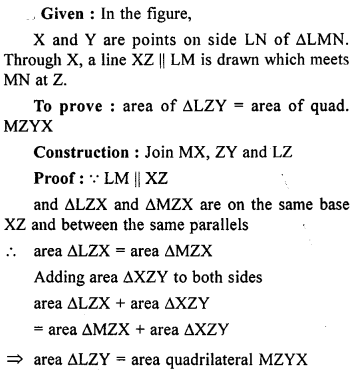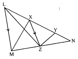 In the adjoining figure, X and Y are points on the side LN of triangle LMN. Through X, a line is drawn parallel to LM to meet MN at Z. Prove that area of ∆LZY = area of quad. MZYX.